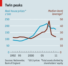 Тем не менее, если британское целевое значение инфляции было лучшим в своем роде, то ее банковская система стала одной из худших. В период между 2002 и 2007 годом бухгалтерские балансы британских банков увеличились почти в три раза, что способствовало буму цен на недвижимость (см. график). Защитные средства акций находились на низком уровне и включали "эффективные" новые типы капитала, которые, как оказалось, совершенно не компенсируют убытки. Новыми средствами финансирования банков стали не вклады, а краткосрочное и легкомысленное рыночное кредитование. Коктейль из высокой доли заемных средств и краткосрочного финансирования привел к грандиозному похмелью. Сэр Мервин не заметил надвигающегося кризиса. И его первоначальная реакция была неосмотрительной. Когда произошел набег на Northern Rock, Центробанк незамедлительно пришел ему на помощь. Но председатель решил говорить о более глубоких причинах кризиса, а не о крайней необходимости, рассказывая о проблемах, которые появляются, когда рынки знают, что банки могут рассчитывать на государство. Он был прав: экономика "субъективного риска" объясняет причину, по которой они возложили на себя большую сумму долга. Однако для подобных уроков время было неподходящее. Говоря об абстрактных экономических учениях, несмотря на кризис, он выглядел оторванным от реальности.