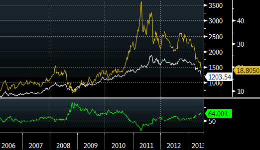 Золоту пока не удается нащупать дно, и драгметалл остается в области 34-месячных минимумов, готовясь завершить худший за последние 90 лет квартал. Квартальное снижение серебра может оказаться рекордным за «всего лишь» 33 года. Высокая волатильность рынка драгметаллов и отвесное падение последних недель и месяцев озадачили аналитиков, мнения которых относительно дальнейшего развития событий серьезно разделились. Как следует из опроса 29 специалистов, проведенного Bloomberg, одна половина экспертов ожидает роста золота на следующей неделе, а вторая половина придерживается диаметрально противоположного взгляда. «Золото уже сильно подешевело, однако дальнейшего падения исключить нельзя», - говорит Торстен Поллейт, главный экономист Degussa Goldhandel во Франкфурте, специализирующейся на торговле драгметаллами. – «Рынок достиг уровней перепроданности, и мы видим интерес со стороны крупных долгосрочных инвесторов». «В последнее время мы получили довольно много сильной статистики из США, а главной темой для разговора остается намерение ФРС сократить объем QE3», - отмечает Александра Найт, экономист NAB в Мельбурне. – «Доверие инвесторов к золоту, определенно, пошатнулось, что вылилось в крупномасштабную ликвидацию паев в соответствующих ETF. Думаю, что люди, желающие воспользоваться текущими низкими ценами для покупки, предпочтут подождать, пока сформируется какое-то дно». Напомним, что в первом квартале свои паи в GLD сократили такие гранды, как Джордж Сорос, Northern Trust и BlackRock. Количество мировых хеджевых фондов, инвестирующих в золото, упало в мае до 290, что является минимальным значением за последние три года. Соотношение золото/серебро достигало на этой неделе 66.47 (прим. ProFinance.ru: максимум с августа 2010 года). В первом квартале 1980 года серебро подешевело на 58% после неудачной попытки братьев Хант загнать рынок в «корнер». Источник: ProFinance.Ru - Новости рынка Forex