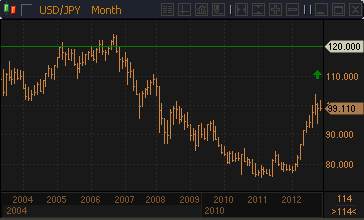 Иена имеет все шансы подешеветь еще на 20%, благодаря тому, что усилия Банка Японии по увеличению денежного предложения, вероятно, побудят местных инвесторов уйти в зарубежные активы, считают в Credit Suisse. «20-процентное снижение японской валюты, начавшееся в прошлом ноябре, завершило первый этап ее девальвации, конечной целью которой является достижение доллар/иеной уровня Y120 в течение ближайших двенадцати месяцев», - считает Рэй Фаррис, глава валютной стратегии банка. – «Средняя котировка пары с 1990 по 2008 год составляет Y116.6, поэтому, с точки зрения исторических показателей, доллар/иене есть куда расти. Синергетический эффект от продолжения количественного ослабления в Японии и крепнущего намерения ФРС приступить к сокращению объема QE3 продолжит стимулировать спрос на пару». Отметим, что, по средним прогнозам аналитиков, собранных Bloomberg, доллар/иена завершит текущий год на отметке Y105, а второй квартала 2014 года – на Y109. Источник: ProFinance.Ru - Новости рынка Forex
