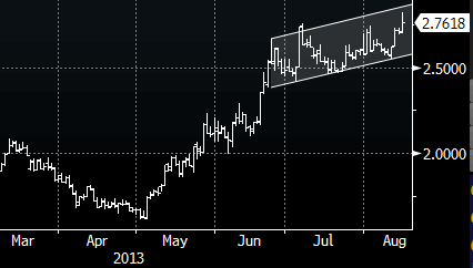 На вечерних торгах в четверг доллар резко подешевел против всех основных валют после резкого рывка золота выше важного сопротивления $1350, что повлекло за собой массированную ликвидацию и длинных позиций в американской валюте, так как многие медведи по золоту одновременно имели лонги в долларе. Свою роль в ослаблении американской валюты сыграл и рост доходности 10-летних облигаций Казначейства США до двухлетних максимумов, что было воспринято участниками рынка в качестве дополнительного доказательства намерения FOMC приступить к постепенному сворачиванию стимулирующих мер уже на своем сентябрьском заседании.