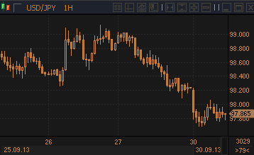 | 30.09.13 12:23 | Доллар/иена. Фундаментальные уровни | 30.09.13 13:50 | Иена и франк в лидерах роста |