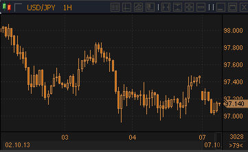 | 07.10.13 08:04 | Евро/доллар. Фундаментальные уровни | 07.10.13 08:47 | Иена подорожала в Азии на фоне роста спроса на безопасные активы |