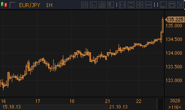 | 22.10.13 17:23 | Комментарии дилеров по иене | 22.10.13 18:26 | BNP Paribas: рост евро/доллара окажется ограниченным |