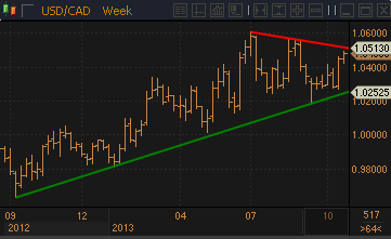 Доллар/луни достиг многонедельной нисходящей линии сопротивления