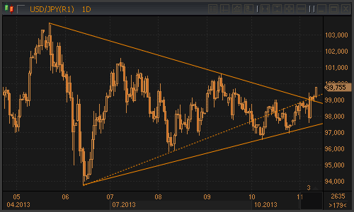 Валютные стратеги из Bank of America Merrill Lynch видят в паре доллар/иена возобновление долгосрочной восходящей тенденции и рекомендуют открывать длинные позиции. Макнейл Карри, технический стратег банка, рекомендовал вход в лонг на 99.42. В случае развития в последующем некоторого нисходящего движения к лонгам можно добавляться на 98.97 и ниже а 97.61. Цель на длинную позицию следует разместить на 104.60. В качестве обоснования своих рекомендаций эксперт указывает на сформированный импульс, который позволил пробить верхнюю линию многомесячного сходящегося треугольника. Источник: ProFinance.Ru - Новости рынка Forex