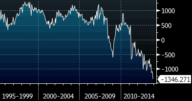 На азиатский торгах в среду иена дешевеет против всех основных валют после публикации в Японии данных по сальдо торгового баланса за ноябрь, которые продемонстрировали дефицит оного уже в тридцать второй раз подряд. Что еще хуже, данный показатель (дефицит сальдо) достиг исторического максимума (см. график), в то время как объем импорта из США взлетел до пятилетнего максимума. Следует отметить, что эти цифры не учитывают озвученных вчера планов японского правительства по массивному перевооружению армии. Поскольку плохие новости для Японии являются хорошими для спекулянтов, фьючерсы на Nikkei 225 и иеновые кроссы отыграли почти все понесенные раньше потери. Источник: ProFinance.Ru - Новости рынка Forex