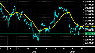 Быки по фьючерсу на индекс РТС вновь расписались в неспособности организовать серьезное наступление. Прорыв выше 200-часового скользящего среднего (ЭМА) оказался ложным, цена вернулась к настоящему времени ниже этого уровня. В целом торги, носят характер консолидации с медвежьим уклоном после сильного открытия с гэпом вниз после длительных праздников в начале 2014 года в России. Для облегчения текущего медвежьего давления необходимо закрыться выше обозначенного сопротивления, а для перехода инициативы к быкам им нужно вернуться выше 21-дневного скользящего значения по индексу РТС, которое в настоящее время находится на уровне 1 412. Графический взгляд на часовой график мартовского фьючерса на индекс позволяет выявить очертания модели «голова и плечи», которая в контексте действующего нисходящего движения может рассматриваться как модель продолжения. Линия шеи проходит в области 137 970 по мартовскому фьючерсу. Полагаем, прорыв ниже ускорит движение вниз, хотя цены ненадолго могут задержаться на 137 500, в районе предыдущих локальных минимумов. Сегодня в США выходит индекс потребительских цен. Вслед за сильными данными по производственной инфляции, которые были опубликованы в среду, есть риск увидеть более сильные данные и по CPI. В этом случае медведи получат дополнительный аргумент и активизируют продажи. Источник: ProFinance.Ru - Новости рынка Forex