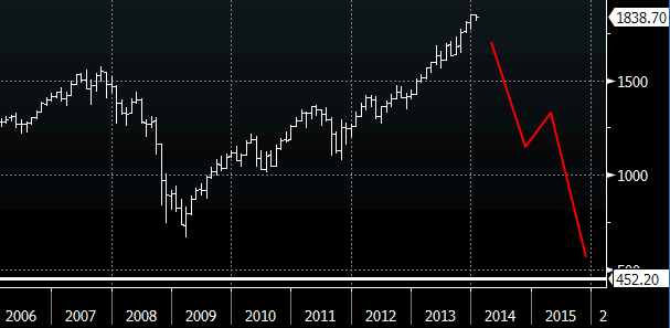 В своем последнем крупном обзоре/прогнозе Вальтер Циммерманн, вице-президент и главный технический аналитик United-ICAP, рассуждает о целом ряде на первый взгляд отвлеченных от финансовых рынков вопросов, среди которых особо выделяется закон непредвиденных последствий. «История творится в равной степени, как самими событиями, так и их непредвиденными последствиями. Часто попытки насильственного изменения существующей реальности приводят к прямо противоположным результатам», - заходит издалека господин Циммерманн. – «Если ФРС пытается насильно сделать нас богатыми, неизбежным результатом этого может оказаться всеобщая бедность. Если ФРС пытается искусственно создать мощнейшее за всю историю экономическое восстановление, результатом может стать глубочайшая за всю историю депрессия. Если ФРС пытается заразить людей уверенностью и оптимизмом, в результате они могут впасть в страх и отчаяние. Если ФРС пытается заставить людей тратить, в результате уверенность потребителей может оказаться уничтоженной». После подобных размышлений господин Циммерманн решает посвятить окончание своей работы собственно техническому анализу, приведя несколько графиков. Из его пояснений к ним (прим. ProFinance.ru: уровни поддержки/сопротивления, волновой анализ, экстремальное количество быков итд) следует, что после достижения цели в 1923.44, S&P 500 имеет все шансы опуститься до отметки 452.20 уже к началу 2016 года. Источник: ProFinance.Ru - Новости рынка Forex