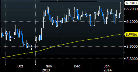 Период торговли в коридоре, судя по всему, завершился: доллар/крона сегодня пробил сопротивление в районе 6.22 и в данный момент торгуется с позитивным настроем, оставаясь поблизости от многонедельных максимумов. Валютные стратеги SEB считают, что у быков есть все шансы на дальнейшее развитие восходящей динамики. В банке обращают внимание на то, что перспективы экономики Норвегии выглядят туманными и ждать восстановления прежнего интереса к норвежским активам со стороны инвесторов в ближайшее время не стоит. В SEB рекомендовали покупки от 6.16 со стопом ниже 6.05 и расчетом на рост к 6.50. Источник: ProFinance.Ru - Новости рынка Forex