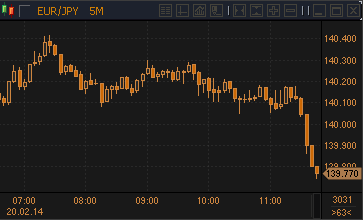 | 20.02.14 11:45 | Ралли по евро застопорилось | 20.02.14 12:40 | Иена растет против всех 16 основных валют |