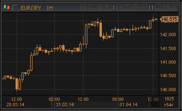 Поддержка 1: Y141.75 - поддержка 31 марта на часовом графике