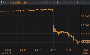После публикации в Австралии слабых данных по инфляции за первый квартал аусси резко подешевел против основных валют, а через пятнадцать минут, после публикации в Китае нейтральной статистики по Индексу PMI для производственной сферы, вновь попал в волну продаж. К настоящему моменту аусси/доллар опустился ниже отметки $0.9303, представляющей собой коррекцию 61.8% от движения $0.9205-$0.9461 и тестирует биды, выставленные вокруг фигуры $0.9300. По словам дилеров, ниже $0.9295 выставленыв стоп-приказы на продажу. Источник: ProFinance.Ru - Новости рынка Forex