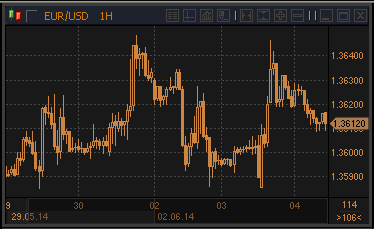 | 04.06.14 10:20 | EUR/USD волатилен и нервозен | 04.06.14 10:39 | USD/CHF застрял в области 200-дневной скользящей средней на 0.8984 |