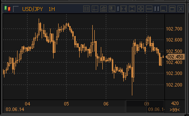 | 09.06.14 11:57 | GBP/USD – негативная тендеция по-прежнему сохраняет силу | 09.06.14 12:10 | USD/JPY держится вблизи к линии восходящего тренда на 102.05 |