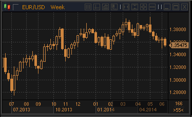 Евро падает по мере того, как у рынка ширится осознание перемен, на которые отважился Европейский центральный банк. Евро падает по широкому фронту валютного рынка - против доллара, иены, фунта, австралийского доллара и многих других валют, подтверждая мысль о том, что ключевая причина падения единой валюты кроется именно в ослаблении денежно-кредитной политики в еврозоне. Радикальные меры, объявленные ЕЦБ, в частности, включают отрицательную ставку по депозитам и адресную помощь в области кредитования. Регулятор также намекнул на ограниченную форму количественного смягчения, которое может последовать, если принятые меры не окажут должного результата. Одним из таких результатов должно стать как раз падение евро. Также как ранее рост евро приводил к ослаблению инфляции, в том числе импортируемой, теперь ослабление евро должно подстегнуть ее, при этом реальные ставки немного возрастут. Почти 5 центов потеряла единая валюта с тех пор, как еще в мае президент ЕЦБ Марио Драги анонсировал смягчение монетарной политики. И сейчас она вновь приближается к психологическому уровню $1.35, потеряв 2,75 % с начала мая.
