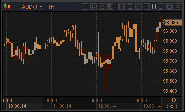 Текущий курс валютной пары аусси/иену: Y96.08