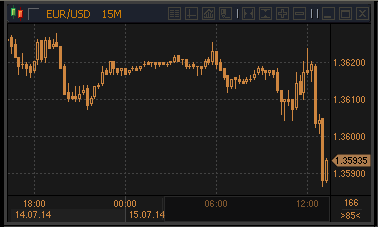 Евро, оказавшийся под давление из-за резкого роста стерлинга на неожиданный всплеск инфляции в Великобритании, продолжает снижаться после выхода слабых данных из Германия от института ZEW. Курс упал с $1.3605 до $1.3587 (внутридневной минимум), пробив биды на $1.3590. Более сильная поддержка отмечена на $1.3576. Индекс ожиданий инвесторов и аналитиков в отношении экономики Германии на ближайшие шесть от института ZEW упал в июле до 27,1 пункта, минимума с декабря 2012 года, с 29,8 пункта в мае, хотя аналитики прогнозировали снижение до 28,2 пункта. В декабре прошлого года индикатор обновил исторический максимум, подскочив до 62 пунктов, но с тех пор месяц за месяцем неуклонно снижался. Индекс отношения к текущей ситуации в немецкой экономике в июле упал до 61,8 пункта с 67,7 пункта. Июньское значение было самым высоким с июля 2011 года. Экономисты ожидали 67,4 пункта. "Есть вероятность того, что ВВП не изменился, а эскалация кризиса на Ближнем Востоке может отрицательно сказаться на экономике, - считает главный экономист по Германии Deutsche Bank AG Стефан Шнайдер. - Но обострение ситуации является маловероятным, и, говоря в целом, экономика Германии все также сильна, как прежде". Однако, сохраняются опасения по поводу BES из Португалии: акции банка торгуют на 15% ниже, что также не способствует здоровой атмосфере вокруг единой валюты. Вдобавок, Марио Драги подчеркнул вчера, что ЕЦБ готов к дальнейшим нетрадиционным мерам в монетарной политике. Вечером динамика курса может резко отличаться от текущей, если Джаннет Йеллен вновь подаст сигналы о неопределенных сроках удержания низких процентных ставок в США. Источник: ProFinance.Ru - Новости рынка Forex