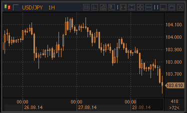 | 28.08.14 13:38 | USD/CHF продолжит консолидироваться в краткосрочной перспективе | 28.08.14 15:33 | GBP/USD пытается восстановиться и торгуется выше апрельского минимума на 1.6558 |