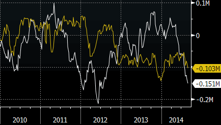 Как следует из опубликованной в пятницу статистики от CFTC, за неделю до 26 августа спекулянты нарастили чистые короткие позиции по евро (-150 657 контрактов против -138 825 контрактов неделей ранее) и иене (-102 891 контракт против 87 271 контракта неделей ранее). Отметим, что объем спекулятивной короткой позиции по евро достиг максимального значения с 24 июля 2012 года, а по иене – с 21 января 2014 года. Рекордные объемы в -214 418 контрактов и -188 077 контрактов были достигнуты 5 июня 2012 года и 26 июня 2007 года, соответственно. Источник: ProFinance.Ru - Новости рынка Forex
