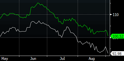 На торгах во вторник котировки Brent обновили годовой минимум, а котировки WTI вплотную к нему приблизились на фоне роста опасений того, что промышленный спад в крупнейших мировых экономиках серьезно подорвет спрос на черное золото. Другим фактором, оказывающим давление на котировки, является продолжающаяся ликвидация накопившейся огромной длинной спекулятивной позиции (прим. ProFinance.ru: 24 июня лонги спекулянтов в WTI достигли исторического максимума в почти 548 000 контрактов). «Все внимание инвесторов сфокусировано на динамике спроса, а слабая статистика, в первую очередь из Китая, вызывает серьезные опасения», - отмечает Бьярне Шилдроп из SEB. – «Рост напряженности вокруг Украины также оказывает давление на котировки, так как экономические санкции против России могут привести и к замедлению в Европе». Отметим, что совокупный ежедневный объем добычи в 12 странах-участницах OPEC вырос в августе до 31 миллиона баррелей (+891 000). Источник: ProFinance.Ru - Новости рынка Forex