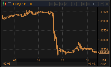 | 08.09.14 10:34 | Евро/доллар. Комментарии дилеров | 08.09.14 11:49 | EUR/USD под давлением |