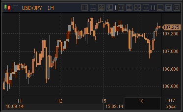 | 16.09.14 11:00 | Евро/доллар подвержен падению ниже линии тренда 1.3007 | 16.09.14 11:27 | Доллар/франк в диапазоне |