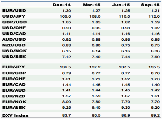 Societe Generale обновил свои валютные прогнозы, которые представлены в таблице ниже. Все значения валютных курсов указаны в таблице на конец обозначенного периода. Источник: ProFinance.Ru - Новости рынка Forex