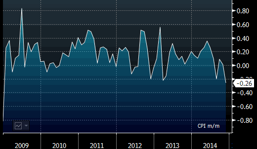Инфляционная динамика с учетом опубликованных сегодня значений однозначно говорит о том, что ценовая тенденция не формирует даже намеков на необходимость задуматься о повышении ставки с целью сдерживания инфляционного давления. При этом ценовая динамика дает пока еще очень легкий намек, на потенциально возможное становление дефляционных настроений. Это в целом портит общую экономическую картину страны на фоне отличных результатов на рынке труда и показателей экономической активности. Фактор явно не в пользу ястребов на сегодняшнем заседании FOMC. Источник: ProFinance.Ru - Новости рынка Forex