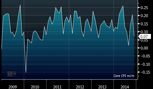 Возлагая определенные ожидания на сегодняшнее заявление FOMC, нельзя не учитывать эти инфляционные данные, а также их динамику, которая представлена ниже на соответствующих графиках. Конечно, ФРС в течение нескольких лет занималась нетрадиционными мерами денежно-кредитной политики и теперь ей предстоит принять сложное решение о вступлении в процесс ее (монетарной политики) нормализации. Именно в этом ключе сконцентрировано внимание рынка. Но не стоит забывать, что в любые времена и при различных неординарных подходах к стимулирующим мерам, классических обязанностей по сохранению ценовой стабильности с Центробанка никто не снимал.