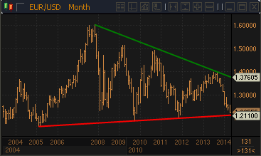 4) другая важная отметка - $1.2134 - представляет собой уровень коррекции 50% от роста с минимума 2000 года ($0.8230) до максимума 2008 года ($1.6038).