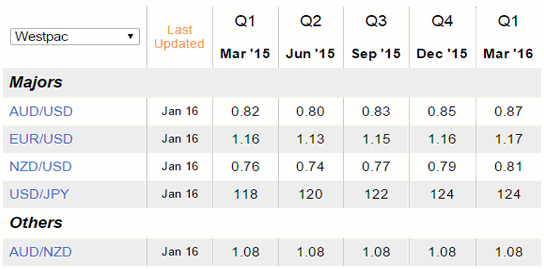 Еженедельное обновление таблицы валютных прогнозов от Westpac. Все прогнозные цены валютных курсов, представленных в таблицы, подразумеваются на конец обозначенного периода. Источник: ProFinance.Ru - Новости рынка Forex
