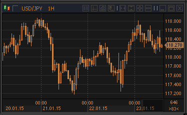 Поддержка 2: Y117.65 – область консолидации на часовом графике 21 -22 января