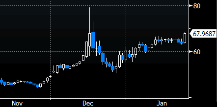 На вечерних торгах в понедельник рубль резко подешевел против доллара и евро после понижения агентством S&P кредитного рейтинга России до «мусорного» статуса. В результате доллар/рубль преодолел локальный максимум в 66.70 от 14 января и взлетел в область 68.35. В настоящий момент пара консолидируется около отметки 68, а следующими целями могут стать уровни 73 (область максимумов 17 декабря) и 79 (область исторических максимумов от 16 декабря). Напомним, что в пятницу в 13:30 МСК Банк России примет решение по ключевой ставке, которая, как (пока) ожидается, останется на уровне 17%. Источник: ProFinance.Ru - Новости рынка Forex