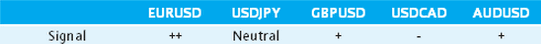 три степени сигнала, подразумевающего рост валюты в рамках следующего месяца: “+++” “++ “ “+”