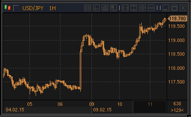 | 11.02.15 11:18 | Фунт пытается удержаться выше 21-дневного МА | 11.02.15 14:12 | Иена падает из-за низкой доходности в Японии |