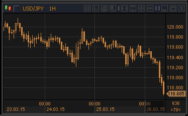 Доллар/иена открылся в Азии на Y119.49, в середине диапазона от Y119.22 до Y119.75, свидетелем которого стали европейские и американские рынки. С утра в условиях, лишенных каких-либо местных экономических данных, направление иены определялось движениями на внутреннем и региональном фондовом рынке. Доллар/иена отступил в район Y119.20, так как Nikkei 225 упал. Надежды на спрос со стороны японских импортеров растаяли, и доллар/иена продолжал снижаться, проходя через Y119.20 к Y119.15 рано утром. После некоторой паузы вокруг этих минимумов потери возобновились к окончанию утра, так как на рынке возобладали настроения по уходу от риска, а спекулянты стали целиться в большие стопы, расположенные, по слухам, ниже Y119.00. Рынок явно угрожал им дальнейшим давлением на пару, в итоге доллар/иена установил минимум Y118.67. Ожидаются дальнейшие потери, потому что Y118.80 уступает натиску продавцов. Вверху остаются офера японских экспортеров и истекающие опционы ($1,3 млрд), что, вероятно, ограничит рост. Сопротивление расположено на Y119.97, которые знаменуют собой 38,2% Фибоначчи от падения с Y121.20 к Y119.22. Иена дорожает на фоне увеличения спроса на валюты "тихой гавани" в связи с началом конфликта на Ближнем Востоке. Саудовская Аравия объявила о начале военной операции в Йемене. "В случае эскалации конфликта на Ближнем Востоке, спрос на рискованные активы конечно же сократится", - говорит валютный аналитик Royal Bank of Canada в Гонконге Сью Тринь. Цены на нефть и драгметаллы также идут вверх.