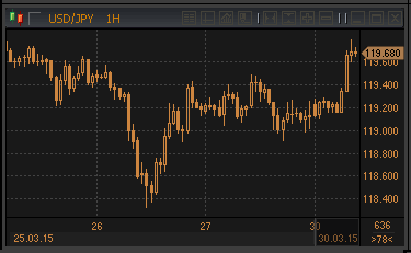 Доллар/иена открыл азиатскую сессию на Y119.20, и после тихого начала мы наблюдали пилу, торговлю в узком диапазоне Y119.14-28. Долларовый спрос появился позднее, вызвав подъем к Y119.33, однако японские счета противостояли этому движению. Евро/иена упал с максимума Y130.04 к Y129.45 после того, как открылся на Y129.80, что, в частности, было обусловлено японской репатриацией перед окончанием финансового года в Японии во вторник. Доллар/иена возглавила усилия по восстановлению, поднявшись к Y129.75/80, однако с отсутствием дальнейшего спроса дрейфовал во второй половине дня. Спрос во время открытия Европы был недолгим. Падение евро/доллара увлекло кросс к минимуму Y129.30. Спрос на минимумах смягчил падение. Далее подключилась покупка импульсных фондов, которые вернули кросс выше Y130.00. При движении вверх сработали стопы. Сопротивление можно увидеть на Y130.17/26 (начальный максимум, 50% от Y131.50-129.03), офера позади стоят на Y130.50. Доллар/иена изначально нашел поддержку со стороны роста доходности трежерис. Сильное ралли доллара было связано с окончанием месяца. Эти потоки в течение утренней сессии позволили паре подняться до Y119.81. Экспортеры, как ожидается, стоят на подходе к Y120.00, технический уровень позади - Y120.10 (61,8% от Y121.20-118.33).