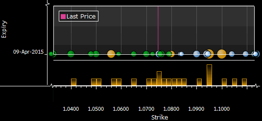 Как пользоваться графической информацией, представленной ниже? На графиках в виде кругов, размер которых зависит от объема, представлены страйки опционов (по оси Х), сроком истечения которых наступает в указанную дату (ось Y). В целях наглядности графически обозначены лишь те опционные контракты, объем которых выше 100 млн. Голубой цвет — Call. Зеленый цвет — Put. Желтый цвет — Mixed C/P. Источник данных: Депозитарная Трастовая и Клиринговая Корпорация (DTCC). Просьба свои замечания и пожелания относительно формата предоставляемой информации направлять по адресу: analytics@forexpf.ru |