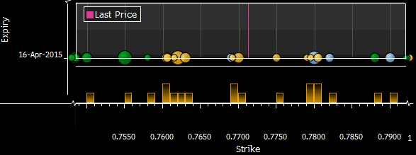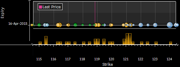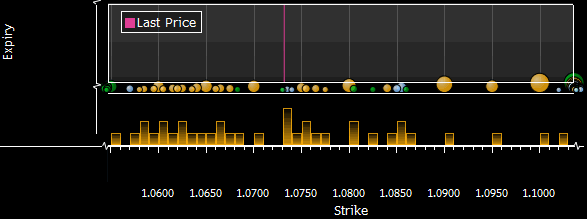 | Как пользоваться графической информацией, представленной ниже? На графиках в виде кругов, размер которых зависит от объема, представлены страйки опционов (по оси Х), сроком истечения которых наступает в указанную дату (ось Y). В целях наглядности графически обозначены лишь те опционные контракты, объем которых выше 20 млн. Голубой цвет — Call. Зеленый цвет — Put. Желтый цвет — Mixed C/P. Источник данных: Депозитарная Трастовая и Клиринговая Корпорация (DTCC). Просьба свои замечания и пожелания относительно формата предоставляемой информации направлять по адресу: analytics@forexpf.ru |
