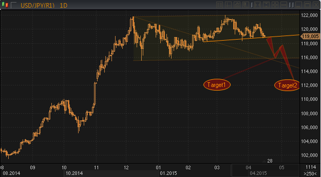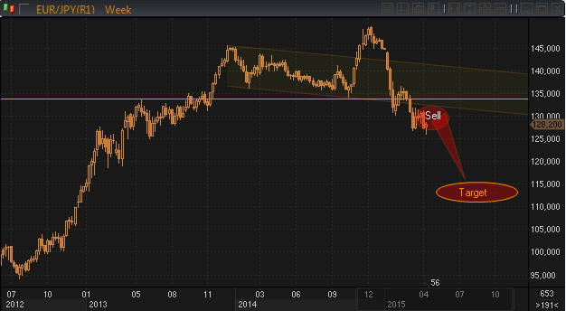 Согласно нашей оценочной модели цены в паре евро/иена в ходе 2 и 3 кварталов должны усилить нисходящую динамику и достигнуть в обозначенном периоде области 115.00/110.00. С одной оговоркой в течение ближайших двух месяцев должен быть пробит уровень 125.00, который включит в игру макро-счета.
