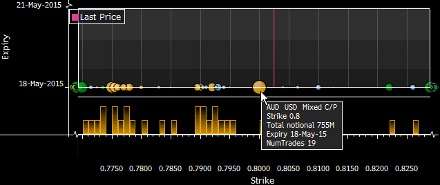 | Как пользоваться графической информацией, представленной ниже? На графиках в виде кругов, размер которых зависит от объема, представлены страйки опционов (по оси Х), сроком истечения которых наступает в указанную дату (ось Y). В целях наглядности графически обозначены лишь те опционные контракты, объем которых выше 20 млн. Голубой цвет — Call. Зеленый цвет — Put. Желтый цвет — Mixed C/P. Источник данных: Депозитарная Трастовая и Клиринговая Корпорация (DTCC). Просьба свои замечания и пожелания относительно формата и содержания предоставляемой на сайте аналитической информации направлять по адресу: analytics@forexpf.ru |
