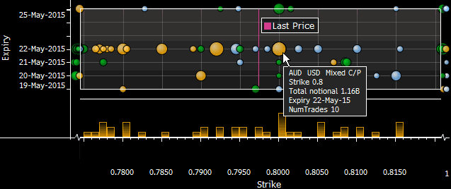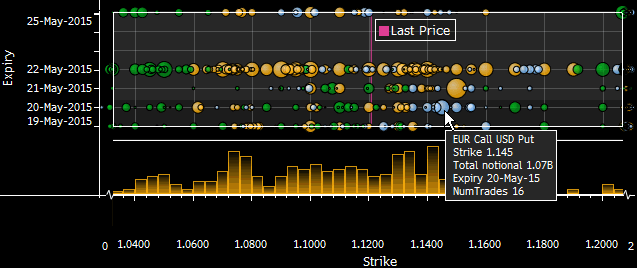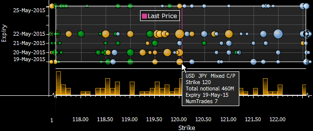 Наиболее интересные опционы, экспирация которых наступает сегодня в 17:00 мск. Евро/доллар: на сегодня нет важных опционов. Однако: в среду $1.1450(E1.07 млрд. Call), в четверг $1.1500(E3.12 млрд. Mixed) Доллар/иена: Y120.00($460 млн. Mixed). В среду: Y119.75($730 млн. Mixed), в пятницу: Y120.00($1.43 млрд. Mixed) Аусси/доллар: $0.7970(A$120 млн. Put). В пятницу: $0.7920(A$1.17 млрд. Mixed), $0.8000(A$1.16 млрд. Mixed) |