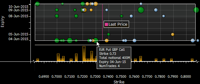 | Как пользоваться графической информацией, представленной ниже? На графиках в виде кругов, размер которых зависит от объема, представлены страйки опционов (по оси Х), сроком истечения которых наступает в указанную дату (ось Y). В целях наглядности графически обозначены лишь те опционные контракты, объем которых выше 20 млн. Голубой цвет — Call. Зеленый цвет — Put. Желтый цвет — Mixed C/P. Источник данных: Депозитарная Трастовая и Клиринговая Корпорация (DTCC). Просьба свои замечания и пожелания относительно формата и содержания предоставляемой на сайте аналитической информации направлять по адресу: analytics@forexpf.ru |