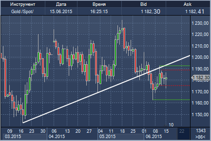 FOREX: Золото. Технический взгляд Комментарий: в рамках восходящего движения на прошлой неделе цены «наткнулись» на сопротивление, которое представлено ранее пробитой линией поддержки, построенной через минимумы марта и мая. Теперь поддержка в области 1175.50/1170.00 сдерживает развитие нисходящей динамики. Если этот уровень будет пробит, цены направятся вниз с целью проверить на прочность минимумы 5 июня в области отметки 1163 доллара за унцию. Наоборот, пробитие максимума 11 июня в области 1188.3 возвращает быкам позитивный настрой и выступает потенциально достаточным драйвером роста до 1195.7 долларов за унцию. Источник: ProFinance.Ru - Новости рынка Forex |