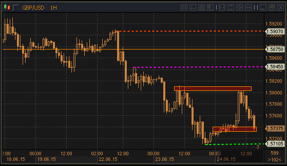 Сопротивление 3: $1.5875 - область консолидации 18-22 июня на часовом графике
