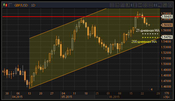 Сопротивление 2: $1.5844 - сопротивление 22 июня на часовом графике