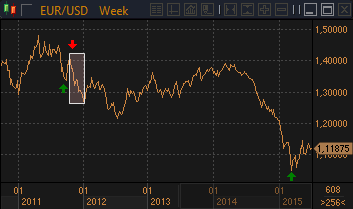 Робин Брукс, главный валютный стратег Goldman Sachs отмечает, что сложившаяся ситуация с референдумом в Греции очень напоминает то, что происходило четыре года назад: и тогда, и сейчас евро рос против доллара на фоне сокращения коротких позиций хедж-фондами. Рост, однако, был непродолжительным — появление идеи референдума (прим. forexpf.ru: в итоге он был отменен) о реструктуризации греческих долгов, которыми владели частные инвесторы, привело к падению евро c максимумов октября 2011 на 10.4% и удвоению чистой короткой позиции в евро за три месяца. Брукс обращает внимание на то, что в этот раз объявлению референдума предшествовали баталии греческого правительства и кредиторов, а премьер-министр Греции Алексис Ципрас прямо указал на то, что правительство хотело бы, чтобы люди сказали «нет» текущим предложениям кредиторов. По мнению Брукса, никто не ожидал, что ситуация зайдет так далеко, и евро выглядит уязвимым. Брукс полагает, что курс может упасть на три фигуры в случае эскалации кризиса, который может заставить ЕЦБ пойти на увеличение программы QE с целью нормализации обстановки на рынке облигаций, что обеспечит дополнительный импульс снижению евро/доллара в направлении паритета. Источник: ProFinance.Ru - Новости рынка Forex