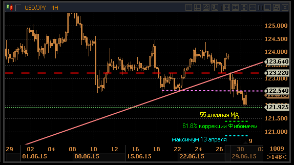 Сопротивление 2: Y122.93/95 - часовой максимумы 29 июня