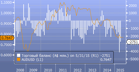 Настрой в отношении австралийского доллара остается подавленным, хотя он пока продолжает цепляться за поддержку в районе $0.76, и публикация данных по торговому балансу этим утром не способствовала его улучшению. Согласно отчету, дефицит сократился, но не так сильно, как ожидали экономисты, и он все еще остается близок к рекордным максимумам апреля — неприятные новости для RBA. Развитие событий на ключевых для Австралийской экономике рынках сырья не позволяет надеяться на то, что показатели торговли заметно улучшатся, а ситуация на рынке железной руды, несмотря на некоторую коррекцию цен, вообще дает повод для тревоги и относительно перспектив экономики Австралии, некоторое улучшение показателей которой способствовало стабилизации австралийского доллара в первом полугодии. Что же поможет? Конечно, более слабая национальная валюта.