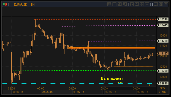 Сопротивление 1: $1.1122/33 – область консолидации на часовом графике 30 июня-1 июля